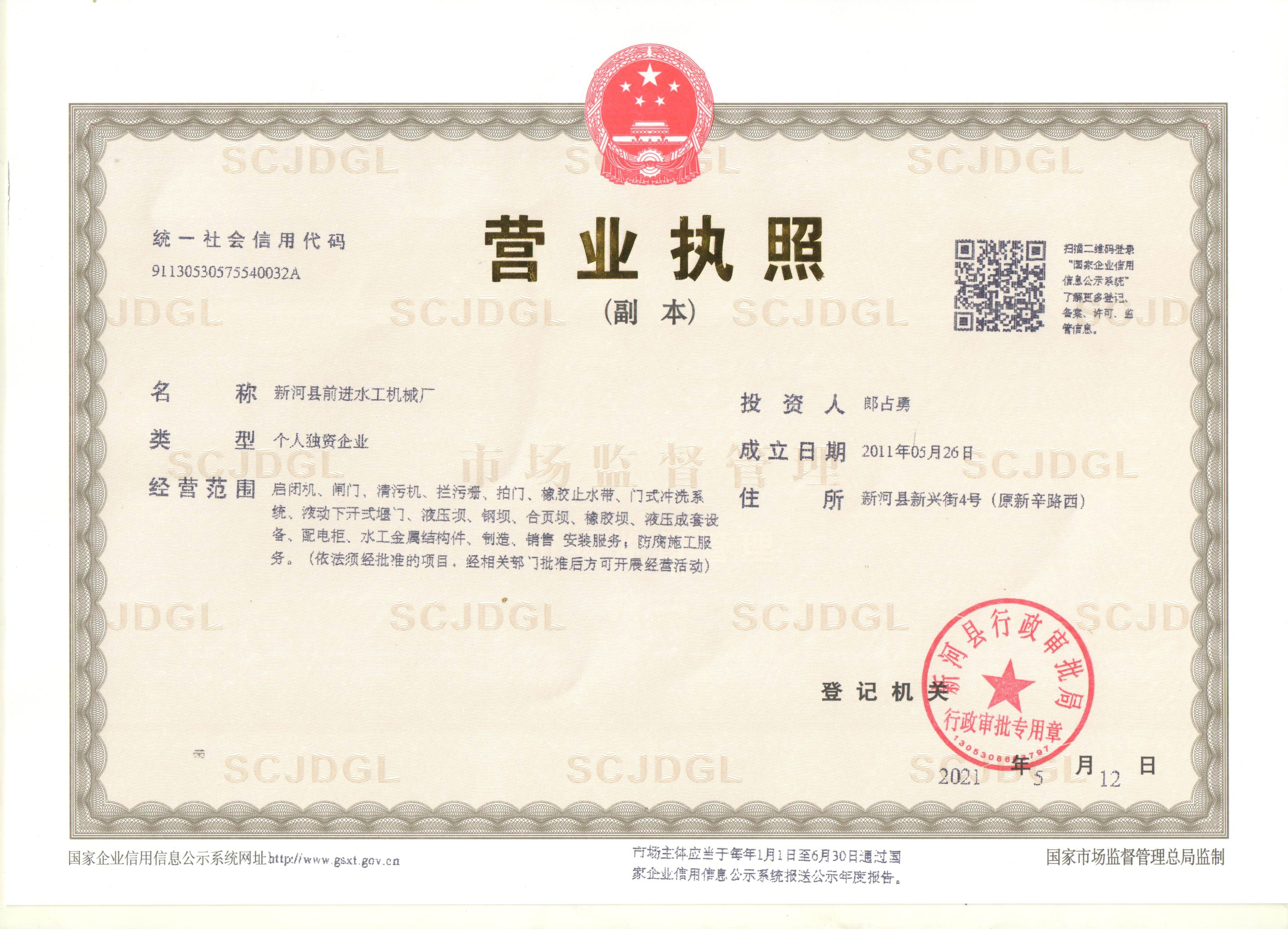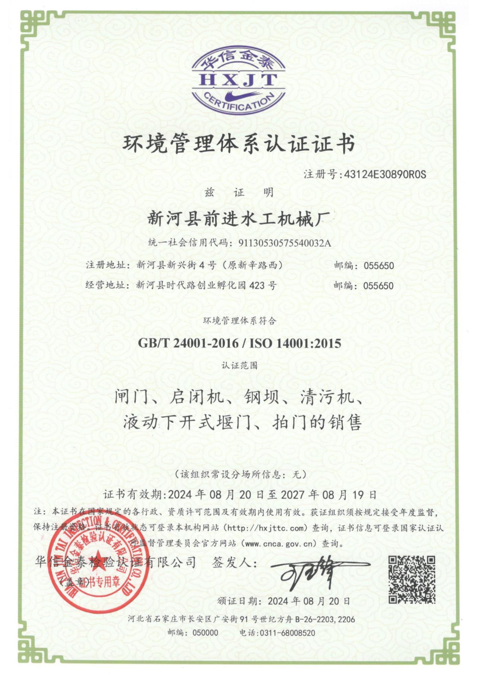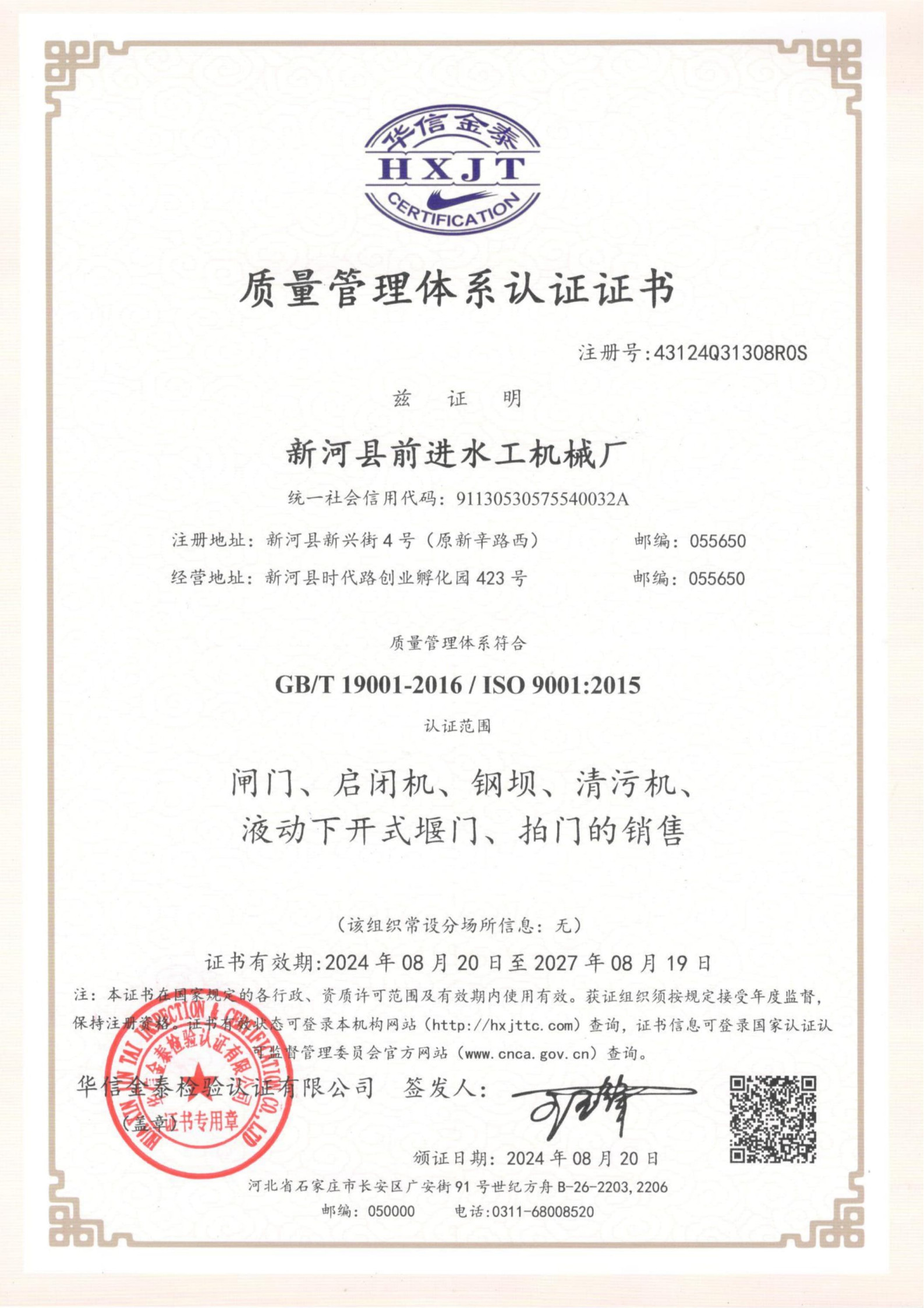 新河縣前進(jìn)水工機械廠是一家專門從事水利工程設(shè)備研發(fā)生產(chǎn)的廠家,現(xiàn)有員工228人,各類高、中級專業(yè)工程技術(shù)人員近30人,技術(shù)生產(chǎn)工人180多人。公司占地面積14674平方米。公司擁有車、鉗、刨、銑、冷作、鈑金、鑄造等,工種齊全,加工能力和技術(shù)力量雄厚,并具備理化測試手段與儀器設(shè)備。前進(jìn)水工專注景觀閘門,鋼壩,合頁壩,液壓升降壩,液壓閘門,臥倒門,一字門,人字門,液壓啟閉機,卷揚啟閉機,螺桿啟閉機,清污機,除污機,閘門,拍門等設(shè)備的研發(fā)與生產(chǎn),是新河水利工程產(chǎn)品行業(yè)的領(lǐng)跑者,不僅在同行業(yè)群中揭起了一次又一次的技術(shù)革新,更為水利工程企業(yè)提供了更高更大的選擇平臺。